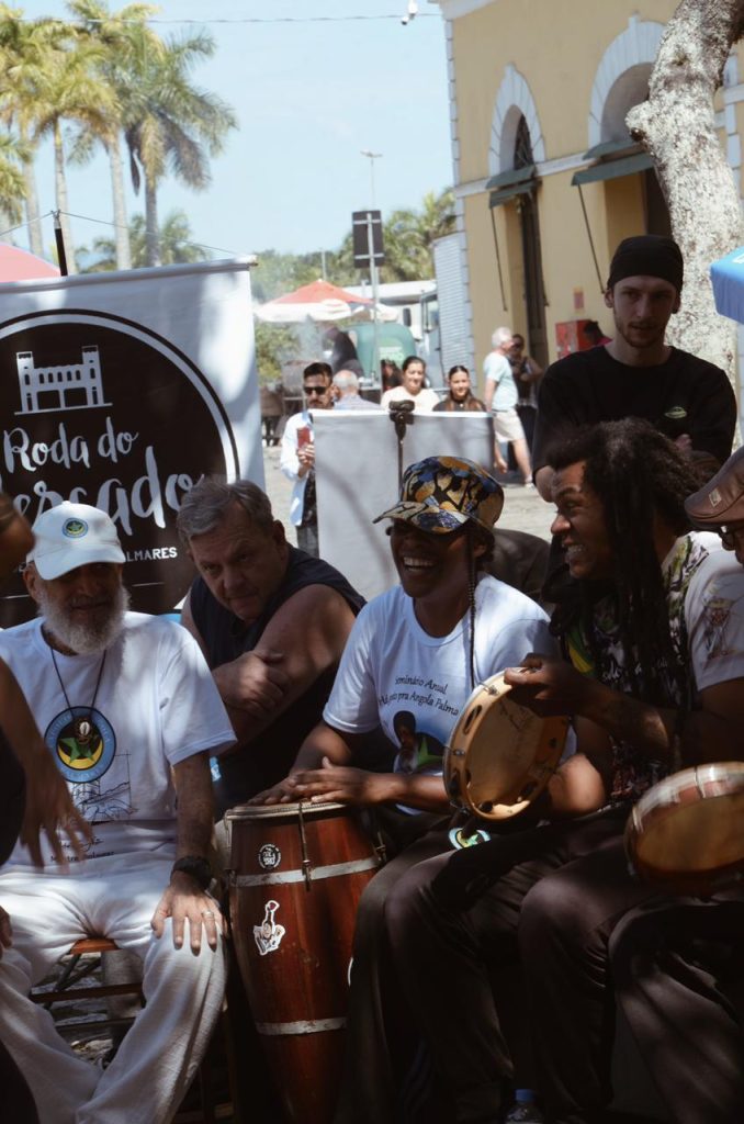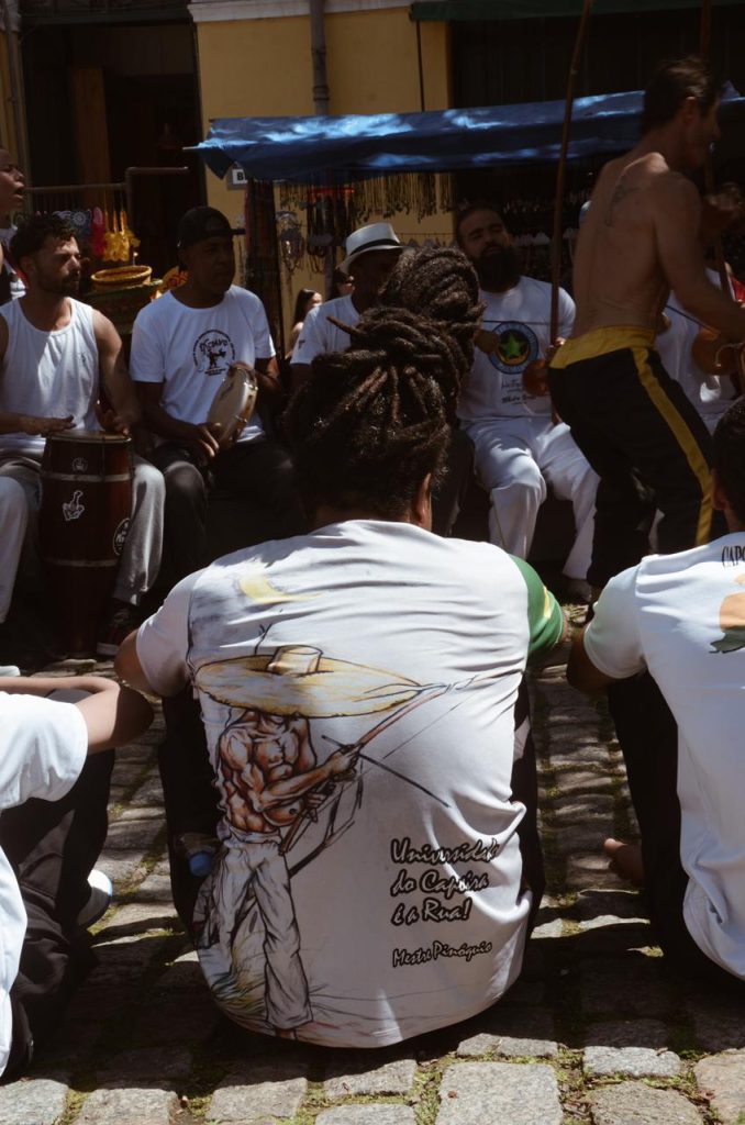 Entre berimbaus e pandeiros, o som ecoa pelo espaço, atraindo olhares e despertando memórias culturais. Um registro de alegria e tradição viva na capital catarinense. (Foto:Júlia Graboski)