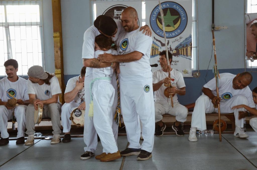 Mestre Bode, do projeto “Tem capoeira no samba”, de Florianópolis, ensina aos seus alunos a importância de levar o que se aprende na capoeira para a vida. “Como hoje a capoeira está no mundo, a gente tenta mostrar isso aí para eles, que eles também podem ir para o mundo”.